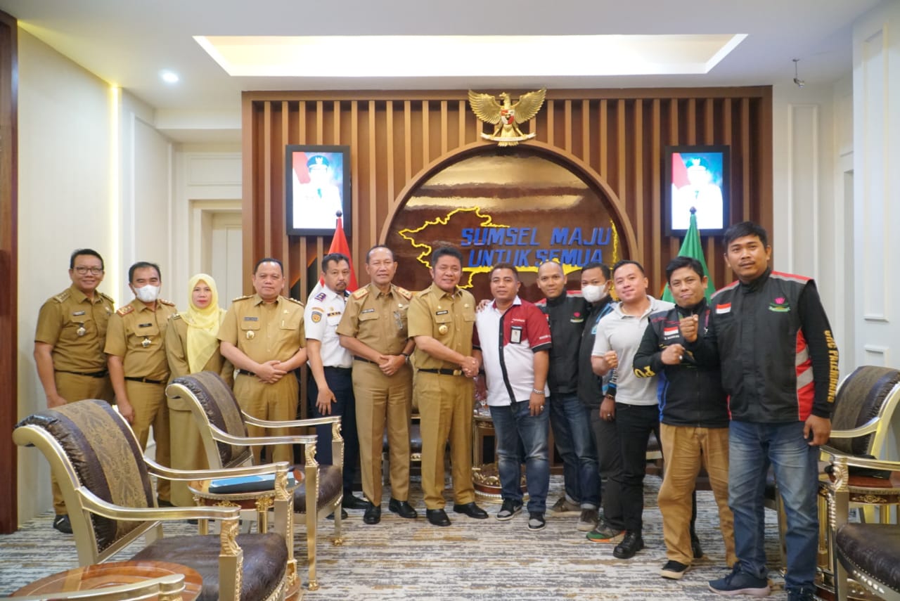 Ketua Komunitas Galaxy Sukses Bersama, Aboy, Ketua Komunitas Driver Street Warior Palembang, Rendy, Ketua Driver Online Palembang Independen, Erikson bertempat di Ruang Tamu Gubernur, Senin, (19/9/2022).