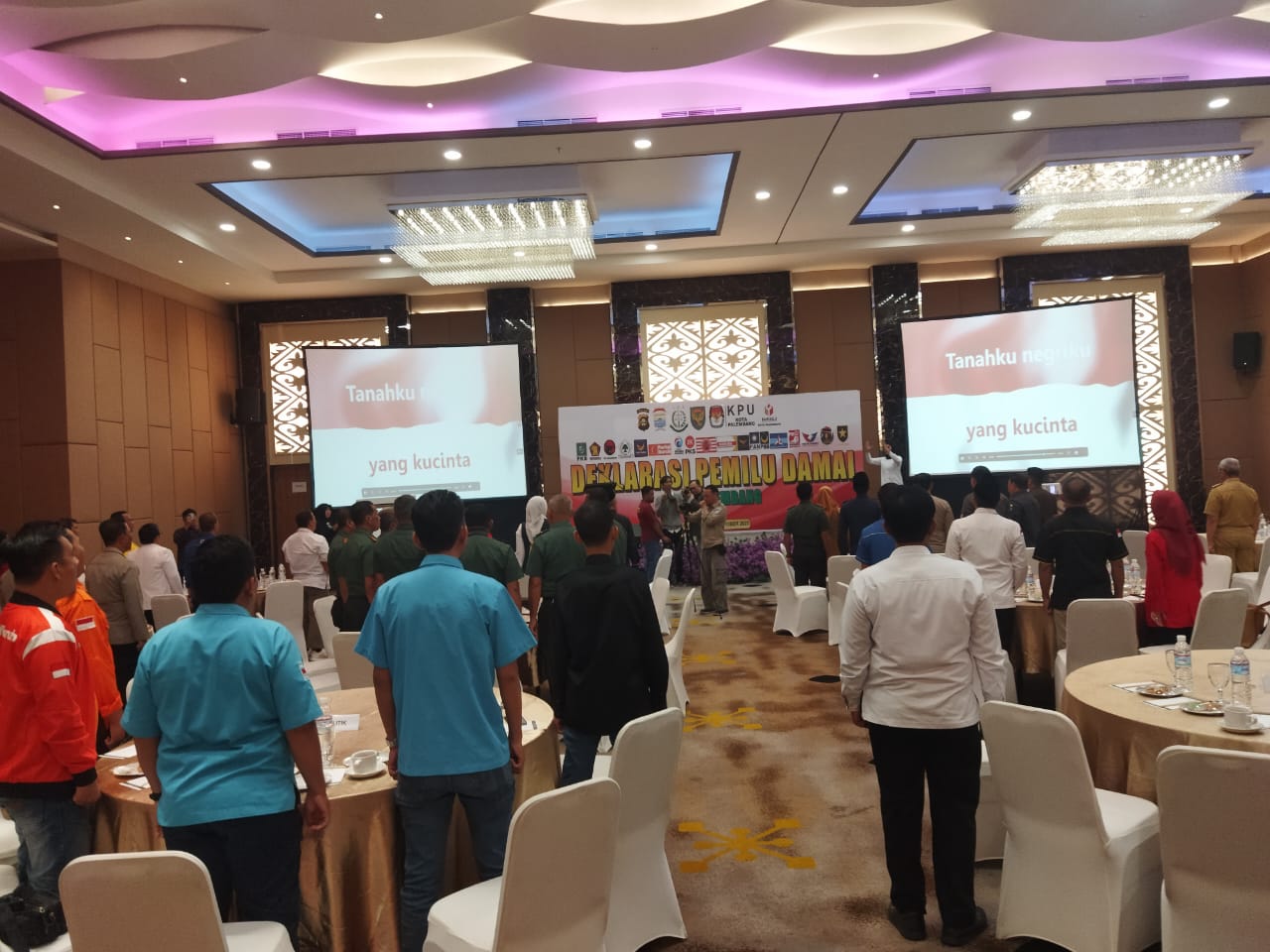 Kegiatan Deklarasi Pemilu diketahui di jalan Gubernur H Bastari, Kecamatan Seberang Ulu (SU) I tepatnya Ballroom Golden Sriwijaya Palembang, Selasa (3/10/2023) pagi.
