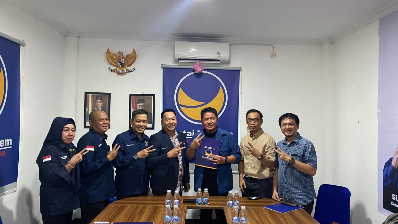 HD didampingi juru bicara, H. Alfrenzi Panggarbesi dan sejumlah kader Nasdem diterima panitia pendaftaran.