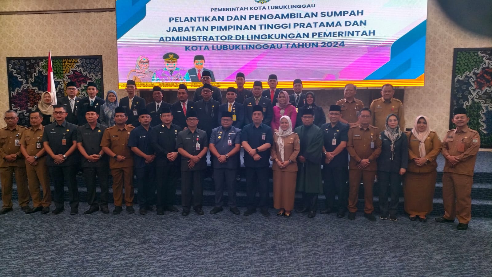 Pelaksanaan pelantikan dan pengambilan sumpah jabatan dilakukan oleh Pj Walikota H Trisko Defriyansa yang berlangsung di lantai lima gedung cinema hall Pemkot Lubuklinggau, Senin (22/7/2024) sore.
