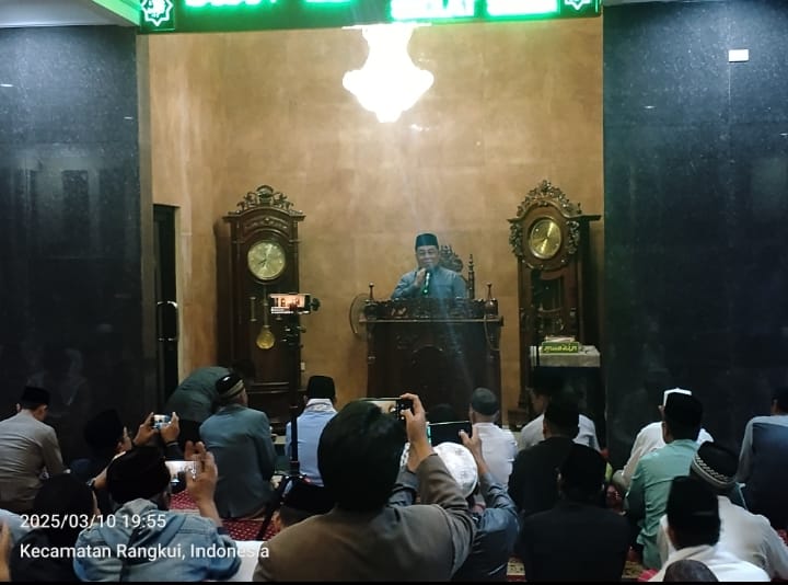 KATANEWS.ID, Pangkalpinang – Safari Ramadhan 1446 Hijriah, Penjabat Walikota Pangkalpinang Unu Ibnudin sholat isya dan tarawih berjamaah di Masjid Permuthi, Senin, (10/3/2025).