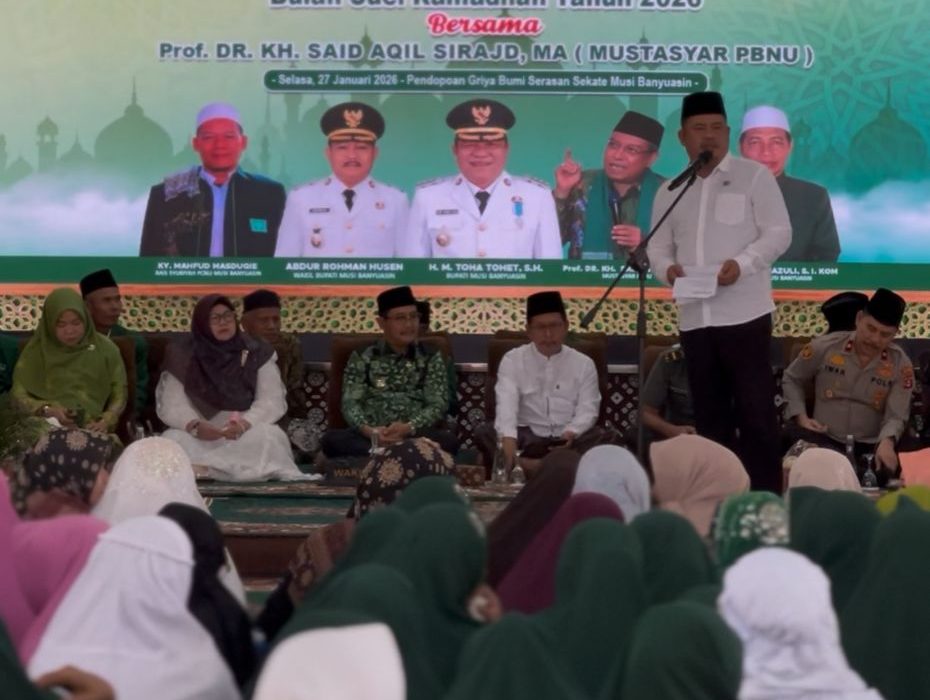 “Atas nama pribadi dan pemerintah Kabupaten Musi Banyuasin, saya menyambut baik diselenggarakannya peringatan Isra’ Mi’raj Nabi Muhammad SAW dan menyongsong satu abad NU serta menyambut datangnya bulan suci Ramadhan 1447 H,” ujar Wakil Bupati Muba Kyai Abdur Rohman Husen.