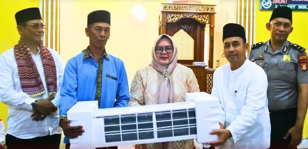 Sebagai bentuk perhatian terhadap kenyamanan jamaah, Wabup juga menyerahkan satu unit pendingin ruangan (AC) kepada pengurus masjid agar masyarakat semakin bersemangat memakmurkan rumah ibadah.